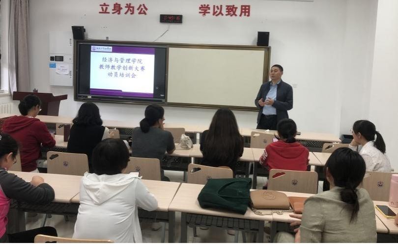 本网讯 9月14日下午,学院在109教室召开教师教学创新大赛动员培训会。学院党委书记付旭、十名拟报名参赛教师参加会议。会议由陈云桥副院长主持。