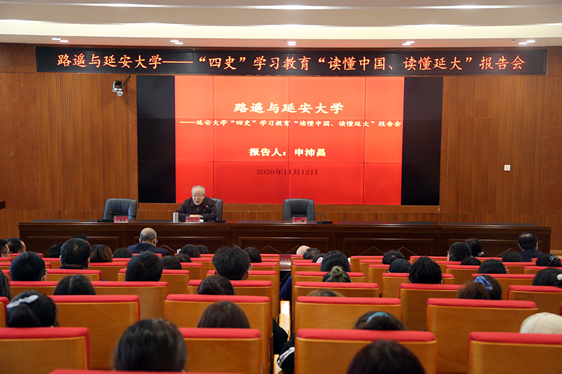 本网讯 11月12日下午,由校关工委与离退处举办的“四史”学习教育,“读懂中国、读懂延大”报告会,在新校区行政楼一楼报告厅举行。学校近几年入职青年教师、辅导员和2020级新生代表200余人参加了报告会,报告会由校党委副书记、关工委主任王顺主持。