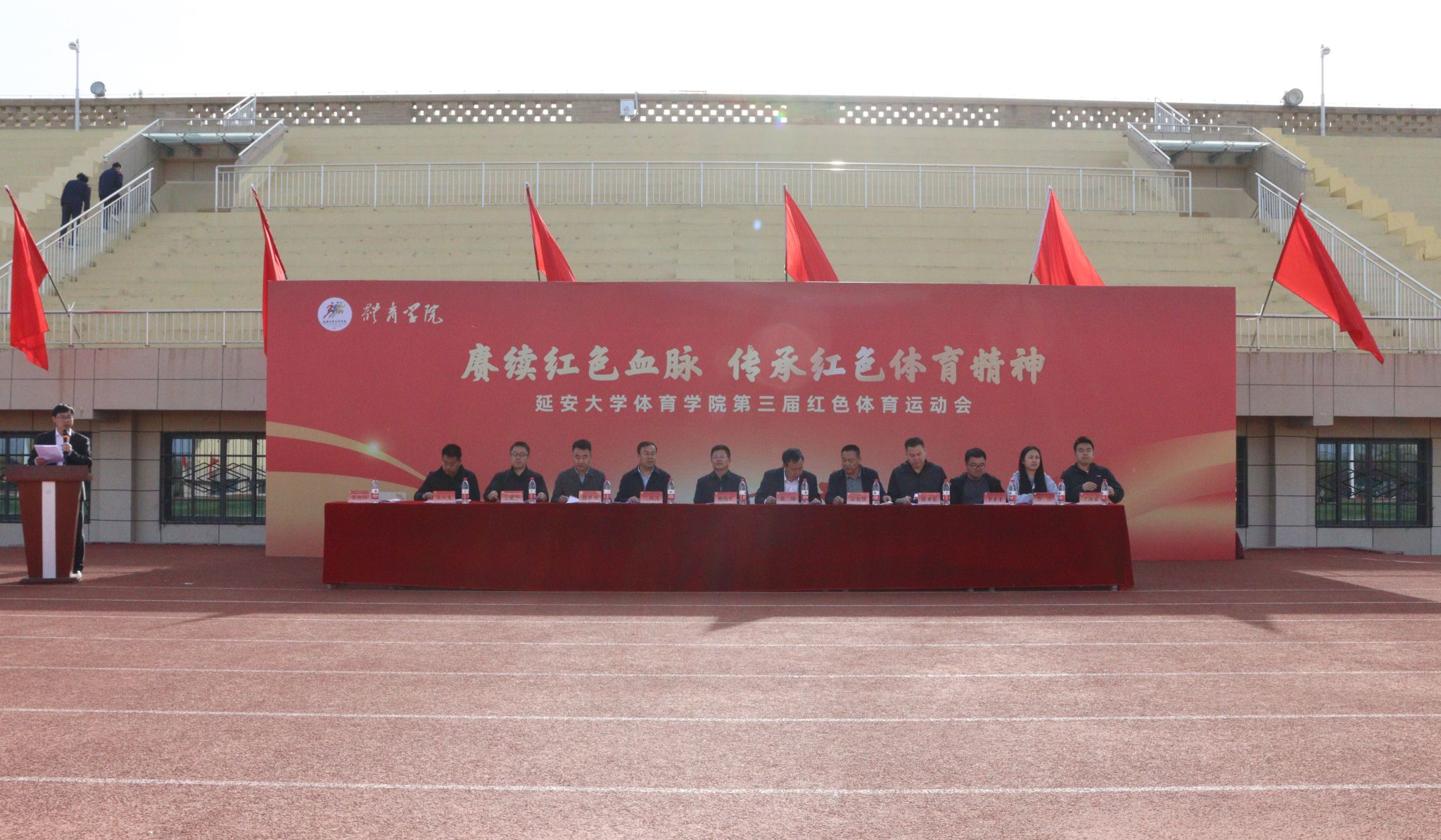 田家伟、李阳辉分别代表裁判员、运动员宣誓。由学生组成的表演团队进行了安塞腰鼓、广播体操、红色体育宣讲《延安时期的体育运动》、棍术以及《青春飞扬》啦啦操表演,赢得了现场观众的阵阵掌声。院长宗有智宣布体育学院“赓续红色血脉 传承红色体育精神”第三届红色体育运动会比赛开始。