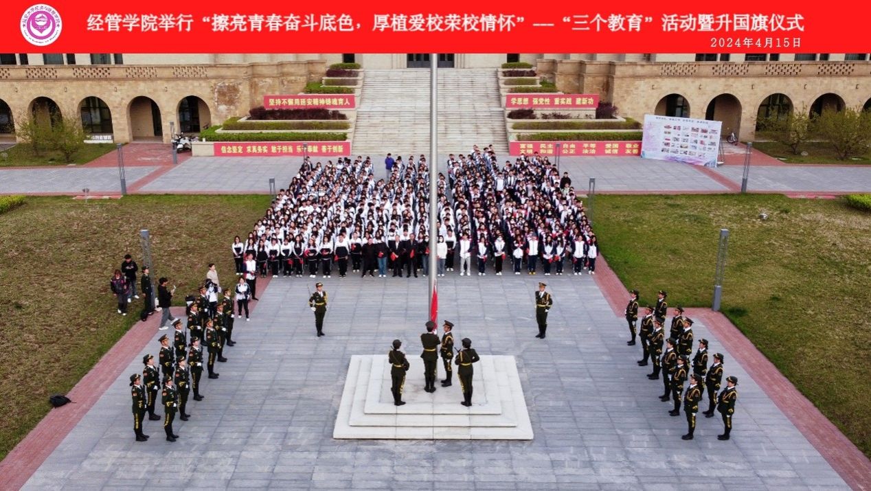 经管学院举行“擦亮青春奋斗底色,厚植爱校荣校情怀”——“三个教育”活动暨升国旗仪式